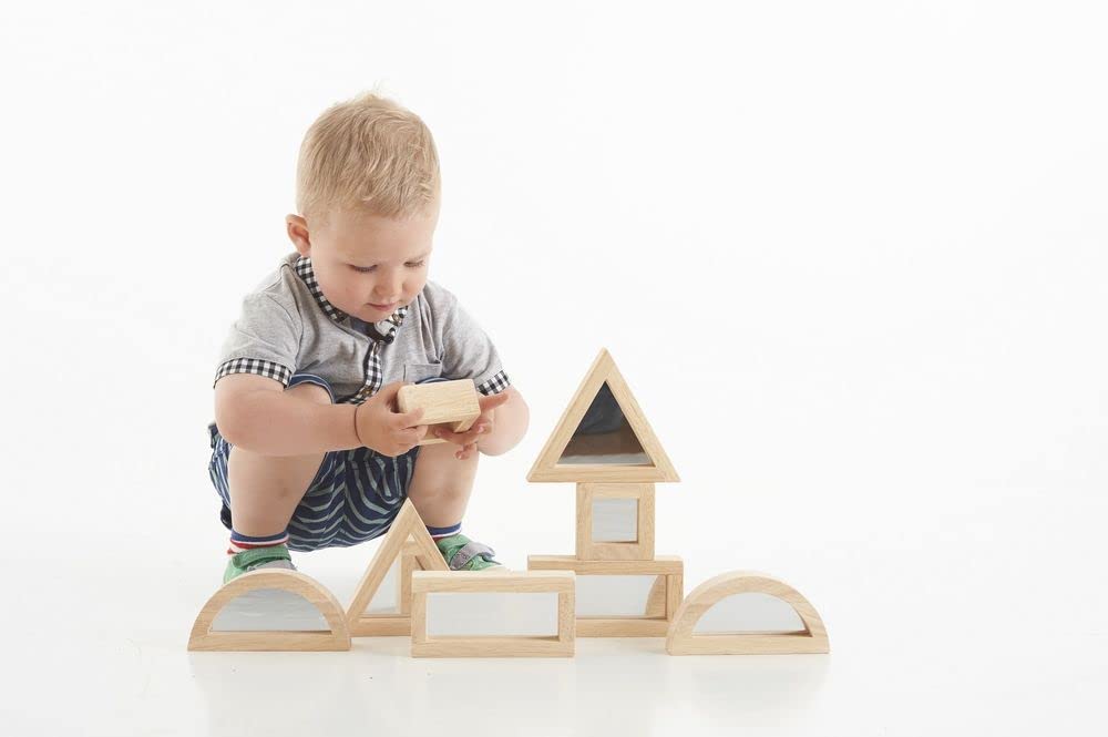 Your child will love exploring their reflection, be captivated by the light reflection from the mirrored surface and enjoy simple block building.