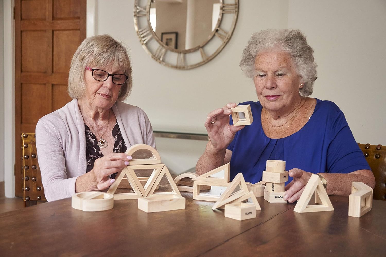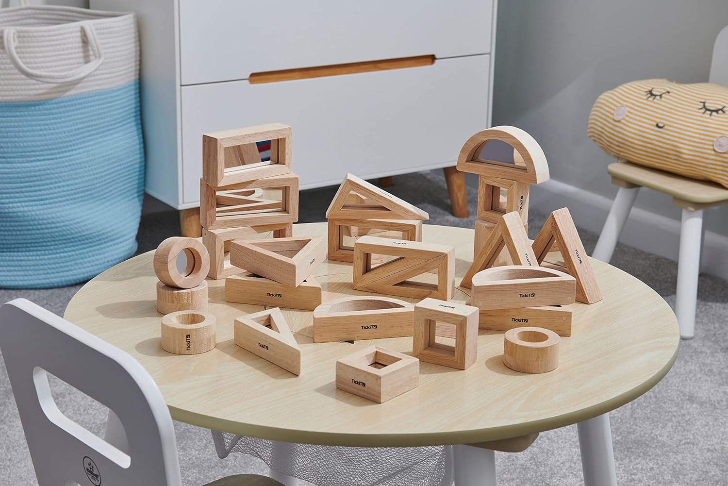 Made from rubberwood Ideal for learning about shapes and reflective pattern making and are lovely used with a light panel.